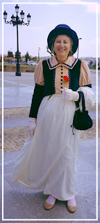 Elegância essa que também carateriza o conjunto utilizado pela nossa amiga Dionísa, apenas destoando neste conjunto o par de óculos utilizado (que me parece ser mais típico do séc. XXI, do que do séc. XIX...).