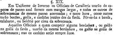 excepção dos Oficiais de Cavalaria usarão sobrecasacas de pano