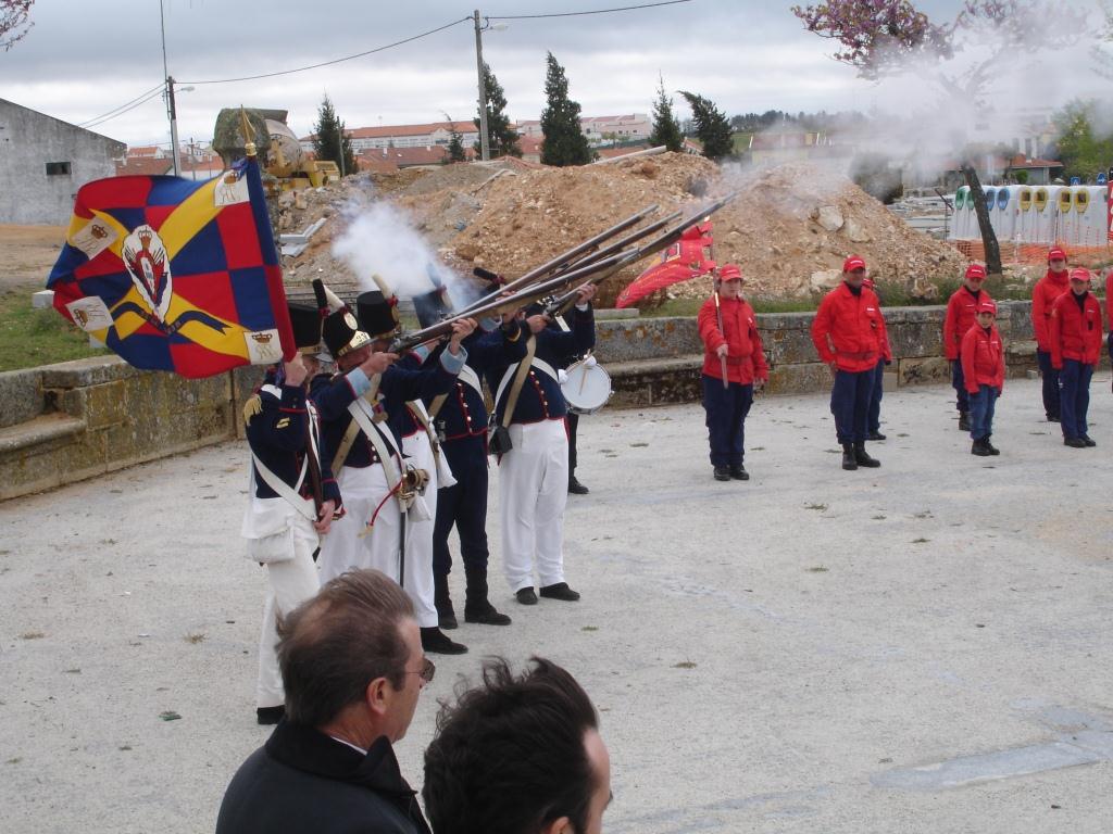 Aspecto geral do largo de Freineda, no momento em que uma esquadra de infantaria realiza uma descarga.