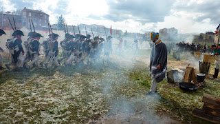 Aqui podemos ver as esquadras de infantaria e artilharia a posicionarem-se no largo que se situa em frente ao monumento a Wellington.
